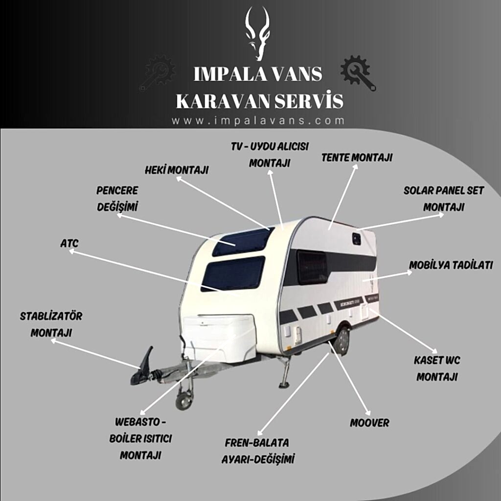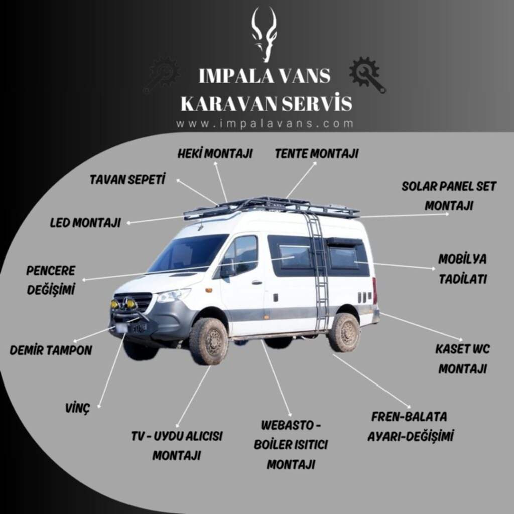 Impala Vans olarak karavanınız için profesyonel bakım, onarım, tadilat ve aksesuar montajı hizmetleri sunuyoruz. Güvenilir ve garantili çözümlerimizle yolda kalmayın. Hemen keşfedin!